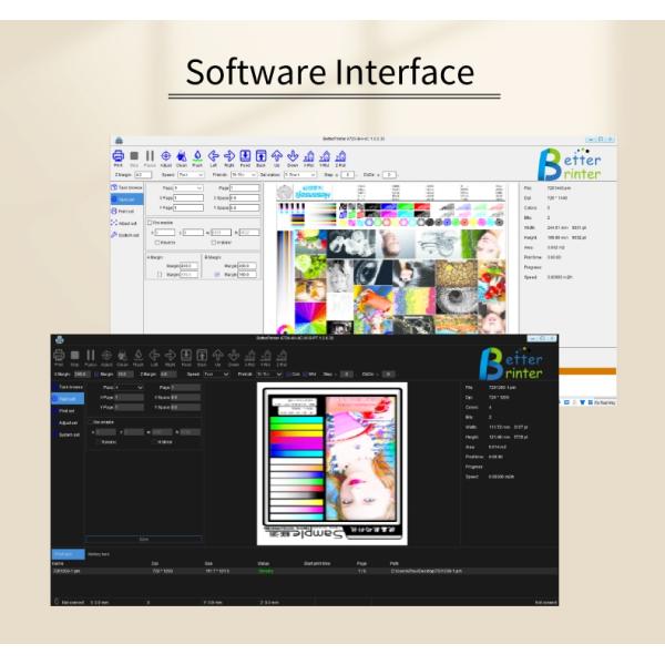 4. Function support: Anti-collision and continuous printing, automatic height measurement, variable point printing, device power failure and continuous printing, USB automatic reset, USB disconnection and continuous printing, paper out detection, ink stack self-check, etc.